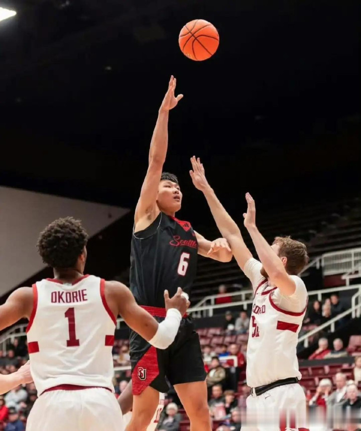 淡厚然:今年21岁,身高2.08,本赛季效力于西雅图大学,出场33场,场均出场15.3分钟,可以得到5.8分2.7篮板,投篮命中率59.2%。